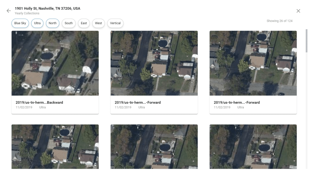 A question came in to support this week on how to select the best image for each day of collection. When we fly and collect aerial imagery, we will typically end up with many shots of a property, each just a second or 2 apart. Add in the fact that we have multiple images in each oblique orientation of north, south, east and west and you can see how we have on the order of 50 views of each property every time we fly over. All of these images can be very helpful in doing detailed analysis of a property, but sometimes you want to present just the best image on each day of flight in your application.