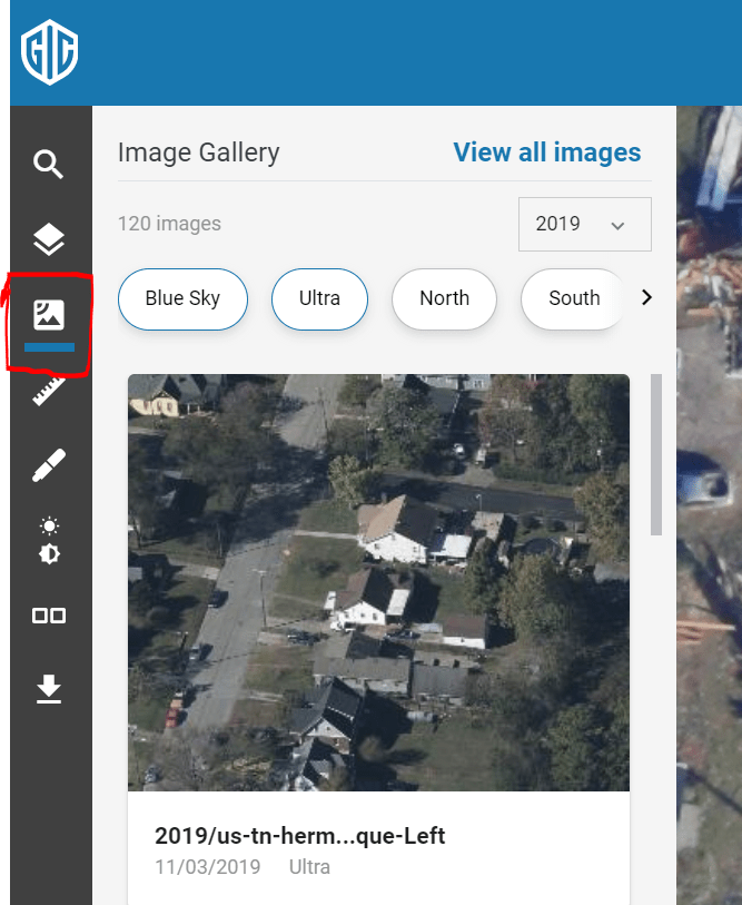 Well, things just got a lot more convenient in the Vexcel Web App! The new Image Gallery Sidebar stays docked in the left rail enabling you to quickly filter, view and repeat without losing context. It is the third tool down on the toolbar as highlighted here: