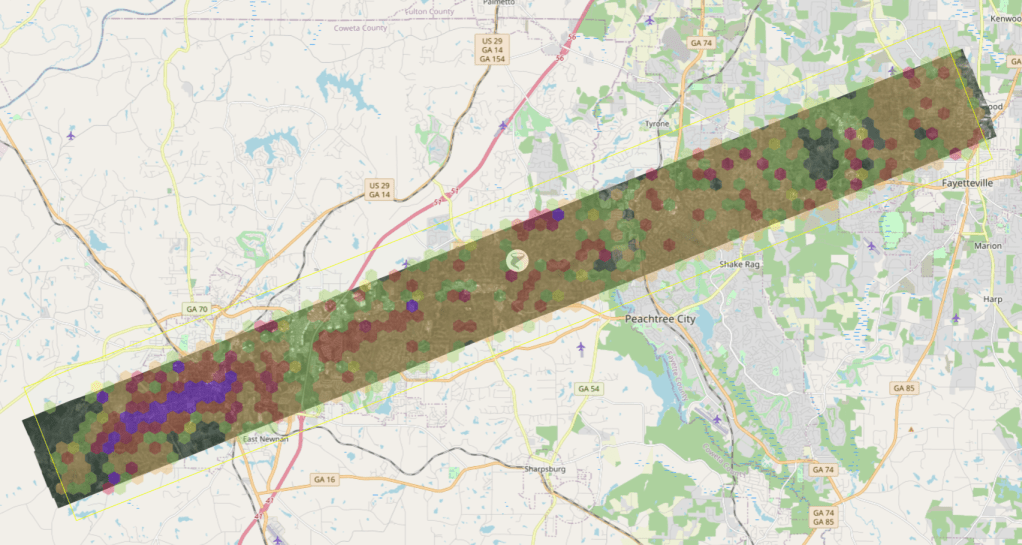 Newnan/Peachtree City – Coweta and Fayette Counties, Georgia An Eagle sensor was used for this tornado collecting nadir images.