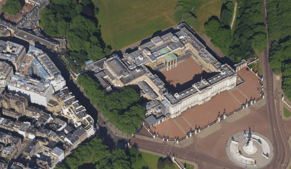 The Vexcel oblique image shown here was captured a few months back in covid times. Here’s your random Buckingham factoid of the day: The standard bearskin hat of the British Foot Guards is 18 inches tall, weighs one and a half pounds and is made from the fur of the Canadian black bear.