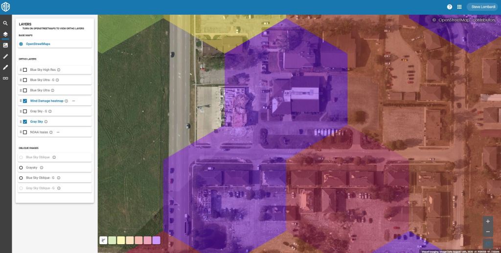 Yesterday GIC responded to the midwest derecho catastrophe collecting imagery over Cedar Rapids, Iowa. this Imagery is now available on the Vexcel Platform as well as via our ArcGIS services. Additionally, through our partnership with the Labs at Munich Re, an AI generated heat map of the wind damage is included. After each hurricane or tornado event that we collect, the Munich Re team runs the imagery through their computer vision system trained on wind damage, scoring each building structure in the affected region on a zero to five scale, considering factors like roof damage, downed trees and blue tarps.