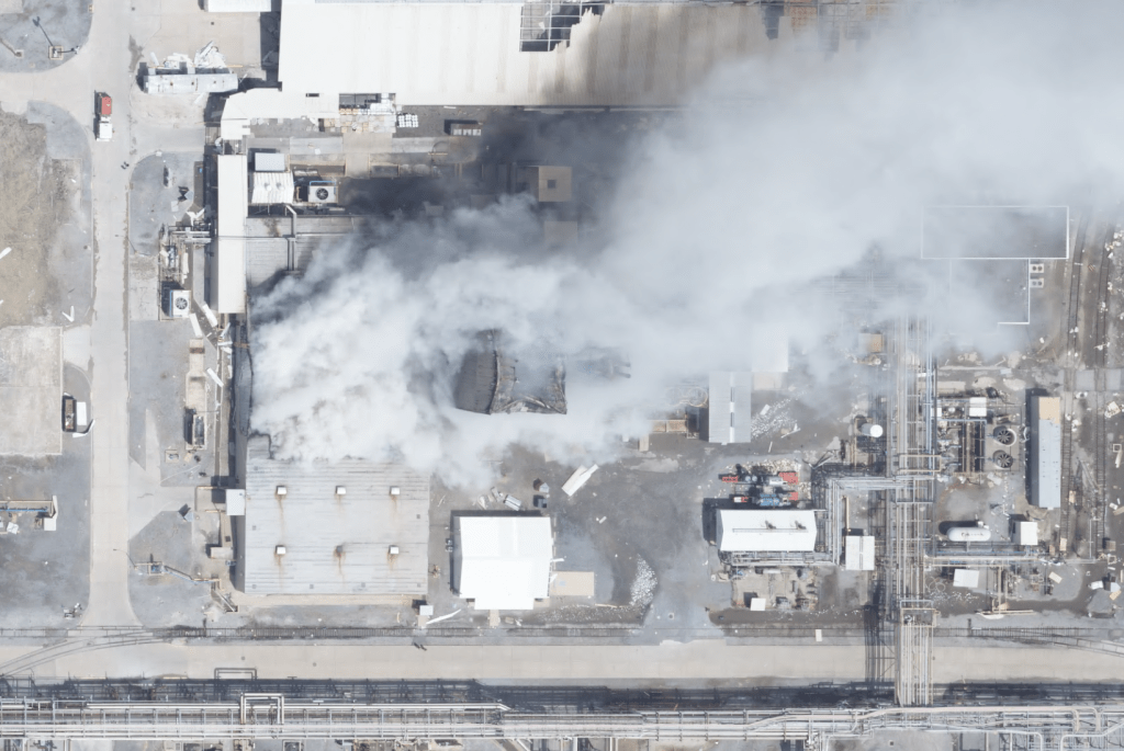 Here is another example with a heavier layer of smoke, along with the same near-infrared image. Although the NiR image may not look like a traditional RGB image you are used to, the information gleaned from it can help first responders make faster, more informed decisions in planning and logistics.