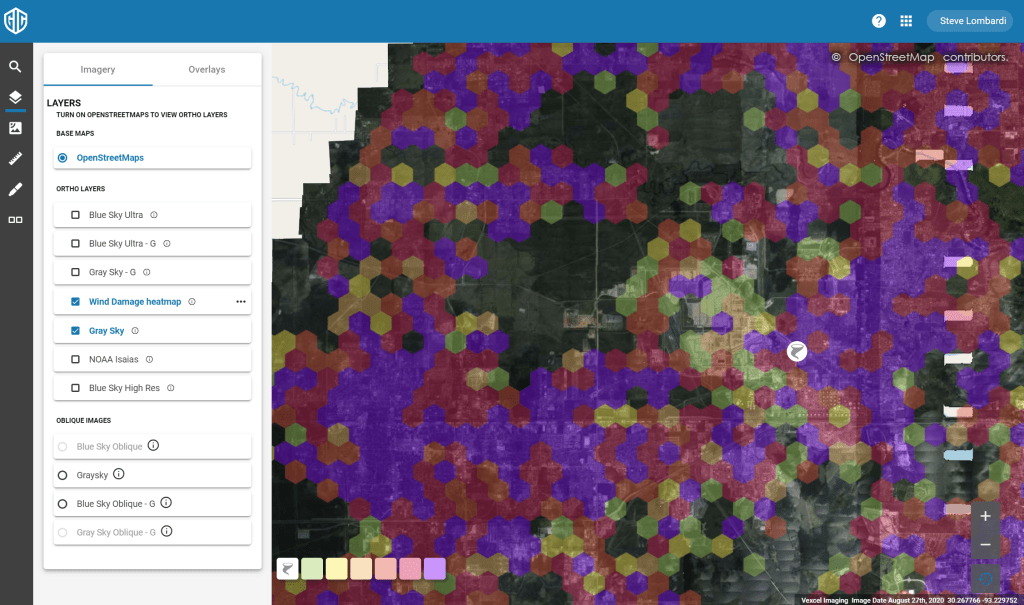 High res ortho imagery in the wake of Hurricane Laura is available for the Lake Charles region, among other areas hit hard by the storm. In this post we’ll look at the tools available in the GIC web application for Insurers to analyze their PIF or other point data sets.