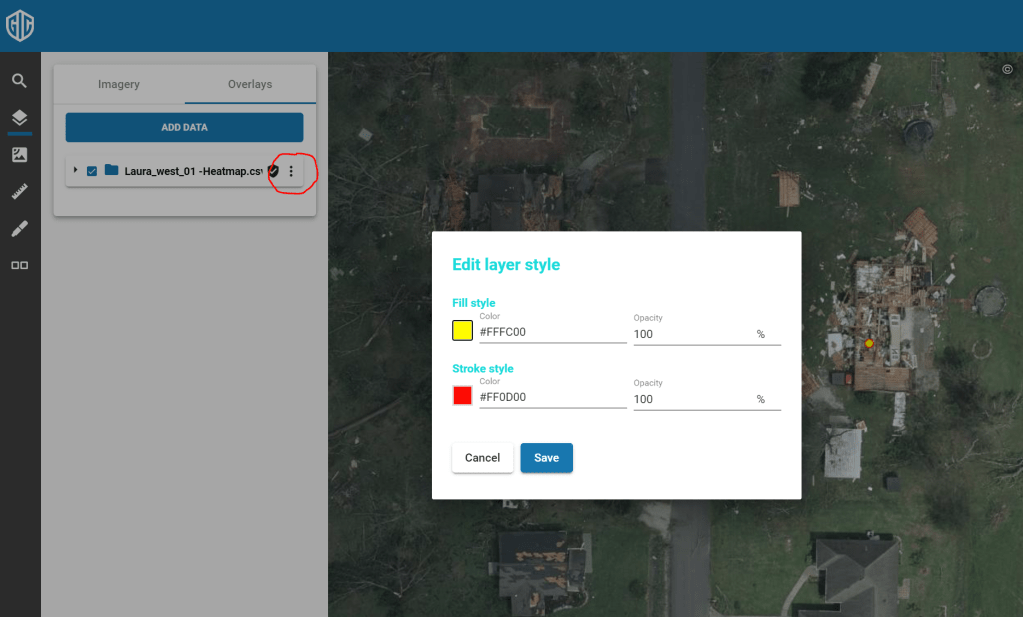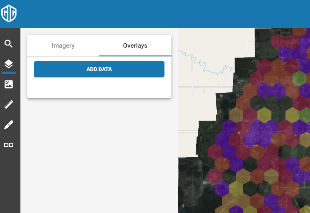 Importing is easy. Go to the Layer control in the left menu. At the top you will see two tabs; one for the imagery layers, and one for your own ‘overlays’. Choose the Overlays tab and hit the ‘Add Data’ button.